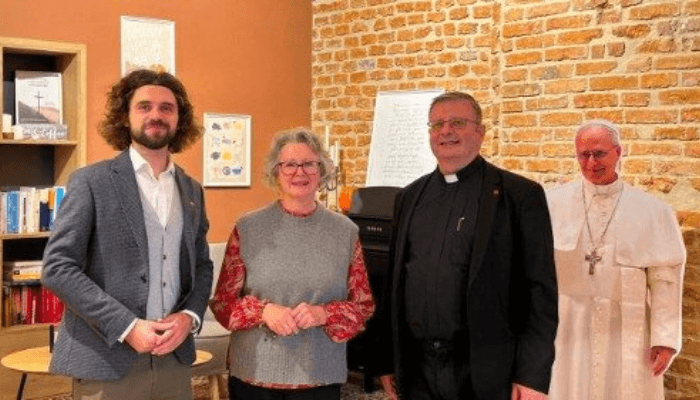 Regina Lynch, President (middle), ACN International, with other colleagues, and Pope Leo at the Vatican