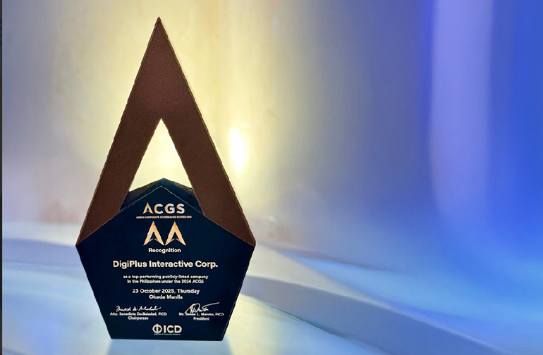 DigiPlus received the 2-Golden Arrow Award, one of five levels given to publicly listed companies that demonstrate excellent corporate governance performance.