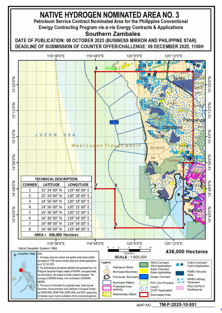 Department of Energy (DoE) Inviting interested industry Players must submit competitive proposals to locate potential natives Hydrogen resources in Nominatural area in southern Zambales, with four more in the pipeline.