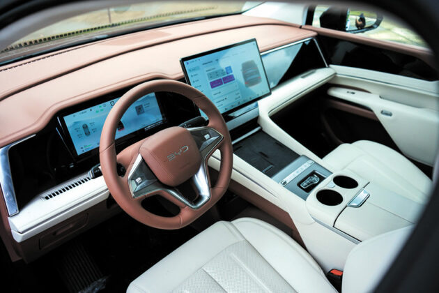 Of course, luxury is best experienced in the cabin. eMax 9 offers a variety of tools. The leather-wrapped front seats are power-adjustable with lumbar support. There are plenty of touches of leather deployed elsewhere, along with soft-touch materials for a more upscale feel. The 12.3-inch digital instrument cluster and the large 15.6-inch infotainment display complete a decidedly digital experience. And, yes, you can also use wireless Apple CarPlay, Android Auto, USB, or Bluetooth for hands-free calling or audio streaming.