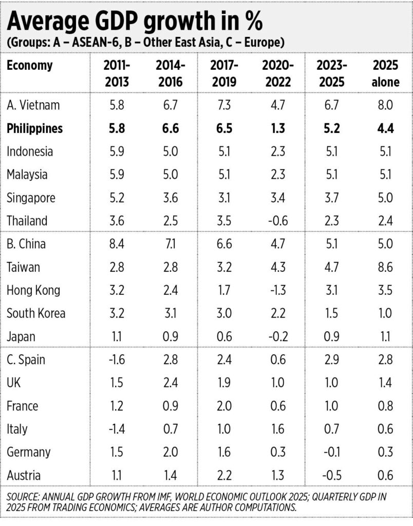 1. From 2011 to 2019, the Philippines had a trend of high growth along with Vietnam – we were the two fastest growing economies in the ASEAN-6 and behind China in the rest of East Asia.