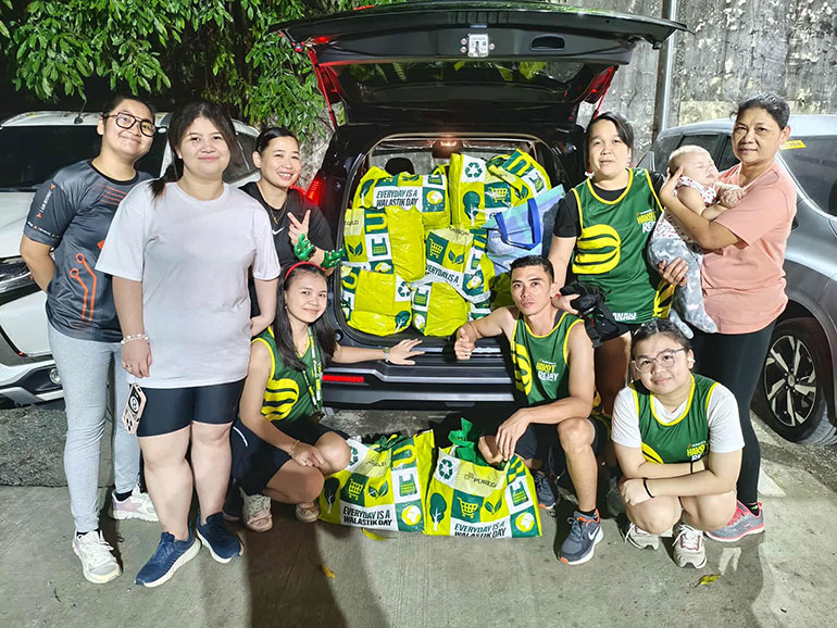 PureGold Hakot Relay Run participants competed in teams of three, who tagged each other at predetermined points in the race, making “Hakot” segment in which runners can pick up groceries to fill their sling bags before tagging along to their next teammate. To participate, attendees only need to meet the minimum purchase requirement at select PureGold branches, then pay a P500 registration fee.